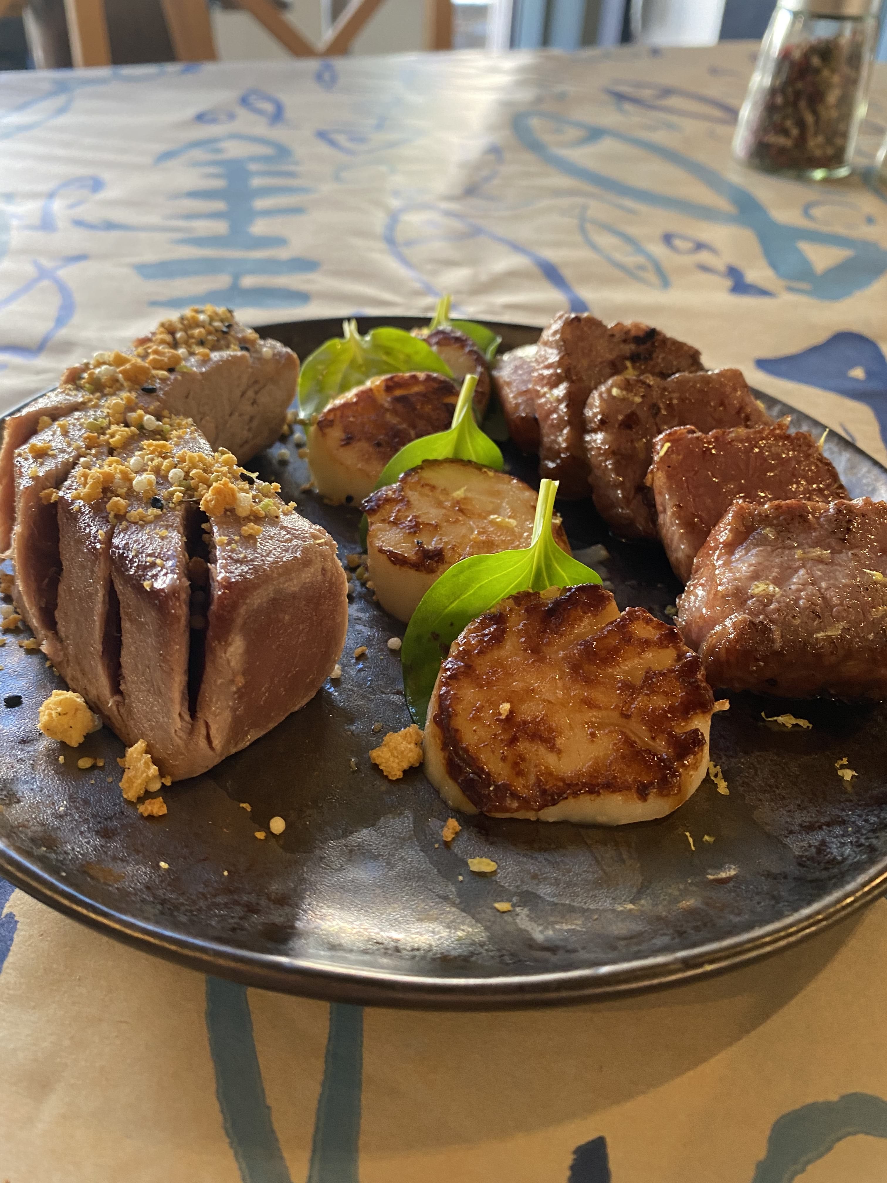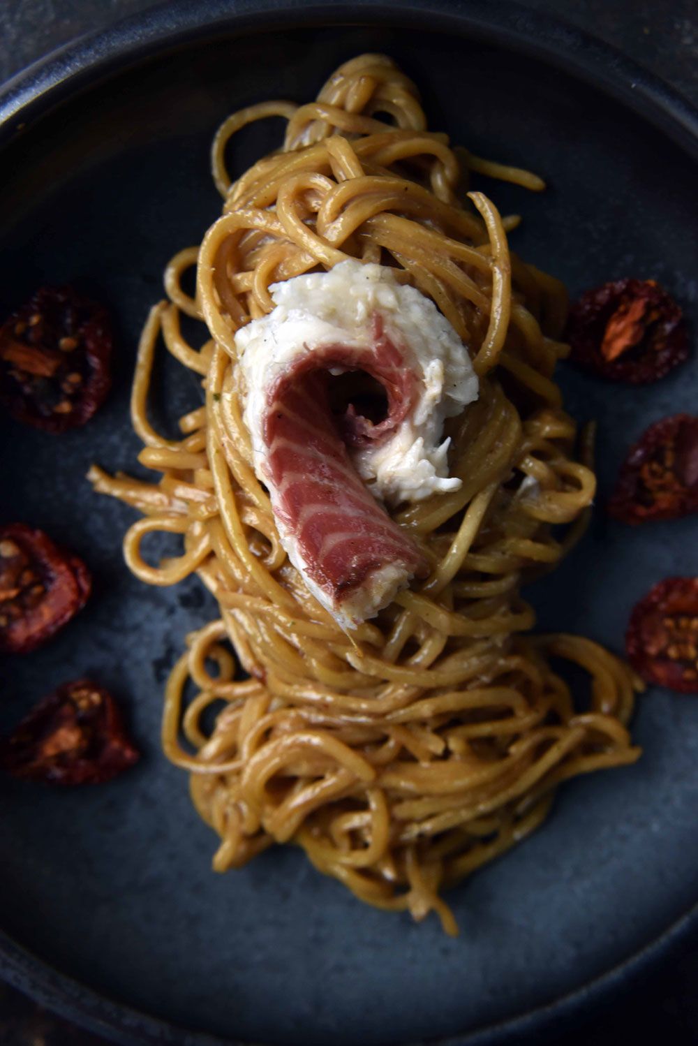 Τηγανητο με σαλτσα σκορδου & flakes τονου